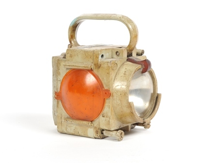 Deze oplaadbare noodlamp heeft bovenaan een schakelaar en een handvat. Achteraan is er een klep waardoor men de lantaarn kan vastzetten. Vooraan zien we een doorzichtig glas, waarover een rood of groen kunststoffen plaatje kan geschoven worden. Boven het glas staat het NMBS-logo.