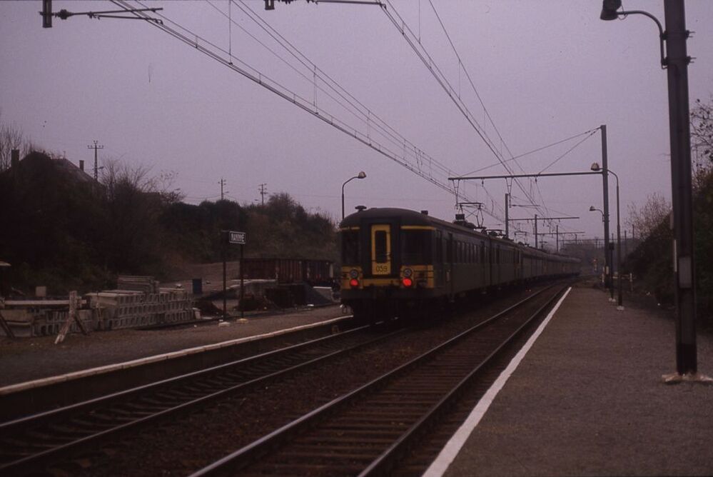 Motorstel 059 behoort tot reeks 00, schijf 1954. Van deze schijf werden 79 exemplaren gebouwd in 1954-'56. Het grote voordeel van deze motorstellen is dat ze aan beide uiteinden een stuurpost hebben, waardoor op eindpunten rangeren overbodig wordt. De kast van dit exemplaar werd vervaardigd door La Brugeoise. De elektrische delen werden geleverd door ACEC/SEM. Het motorstel bestond uit een rijtuig AB (eerste en tweede klas) en een rijtuig BD (tweede klas en bagageruimte). Het kon een snelheid van 130 km/u behalen en had 171 zitplaatsen (28 eerste klas en 143 tweede klas). Schenking van Myriam Hendrickx.