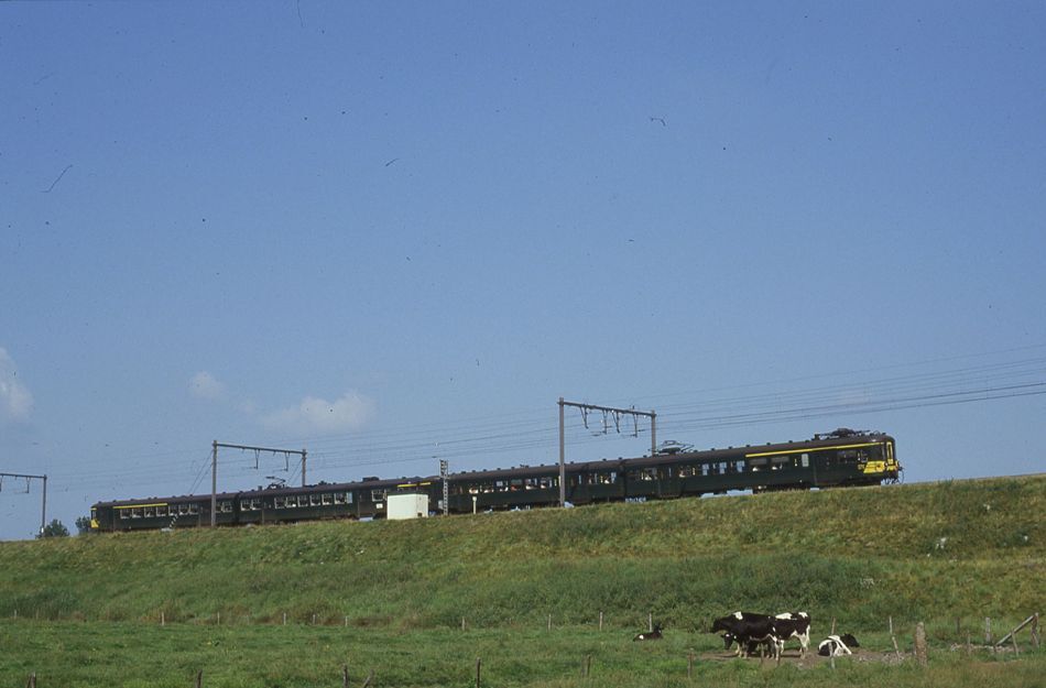 Motorstel 076 behoort tot reeks 00, schijf 1954. Van deze schijf werden 79 exemplaren gebouwd in 1954-'56. Het grote voordeel van deze motorstellen is dat ze aan beide uiteinden een stuurpost hebben, waardoor op eindpunten rangeren overbodig wordt. De kast van nr. 076 werd vervaardigd door La Brugeoise. De elektrische delen werden geleverd door ACEC/SEM. Het motorstel bestond uit een rijtuig AB (eerste en tweede klas) en een rijtuig BD (tweede klas en bagageruimte). Het kon een snelheid van 130 km/u behalen en had 171 zitplaatsen (28 eerste klas en 143 tweede klas). Schenking van Myriam Hendrickx.