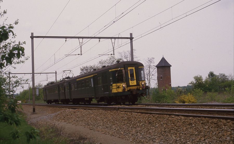 Motorstel 521 maakt deel uit van reeks 00, schijf 1955. Tussen 1955 en 1956 werden 38 exemplaren van deze schijf gebouwd. Deze motorstellen haalden een maximumsnelheid van 130 km/u. Zij bestonden uit een rijtuig ABD (eerste klas, tweede klas en bagageafdeling) gebouwd door Les Ateliers de la Dyle (Leuven). Het rijtuig B (tweede klas) werd gebouwd door Société Anglo-Franco-Belge (La Croyère). ACEC/SEM leverde de elektrische onderdelen. In totaal bood het motorstel plaats aan 173 personen (28 eerste klas en 145 tweede klas). Schenking van Myriam Hendrickx.