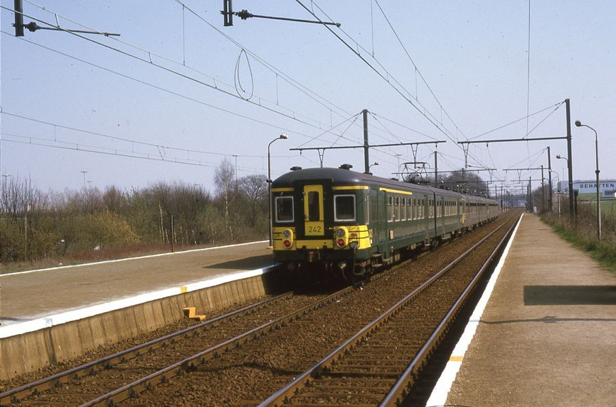 Motorstel 242 behoort tot reeks 00, schijf 1963. Van deze schijf werden 40 exemplaren (genummerd van 211 tot 250) gebouwd in 1963. Het grote voordeel van deze motorstellen is dat ze langs beide kanten een stuurpost hebben, waardoor rangeren overbodig wordt. Het motorstel bestond uit een rijtuig B (tweede klas) gebouwd door La Brugeoise et Nivelles (BN). Het rijtuig ABD (eerste klas, tweede klas en bagageruimte) werd vervaardigd door Germain. De elektrische onderdelen werden door ACEC (Charleroi) geleverd. Het motorstel kon een snelheid van 130 km/u behalen en had 180 zitplaatsen (28 eerste klas en 152 tweede klas). Schenking van Myriam Hendrickx.