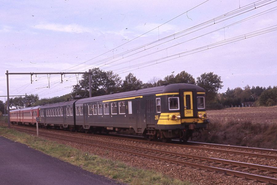 L’automotrice 263 appartient à la série 00, tranche 1965. 20 exemplaires de cette tranche, numérotés de 251 à 270, ont été construits en 1965. Le grand avantage de ces automotrices est qu’elles ont un poste de conduite aux deux côtés, rendant les manœuvres inutiles aux terminus. L’automotrice se composait d’une voiture ABD (première classe, deuxième classe et compartiment à bagages), construite par Ragheno. La voiture B (deuxième classe) a été fabriquée par La Brugeoise et Nivelles (BN) et Les Usines de Braine-le-Comte (BLC). Les éléments électriques ont été livrés par ACEC (Charleroi). L’automotrice pouvait atteindre une vitesse de 130 km/h et offrait 180 places assises (28 en première classe et 152 en deuxième classe). Don de Myriam Hendrickx.