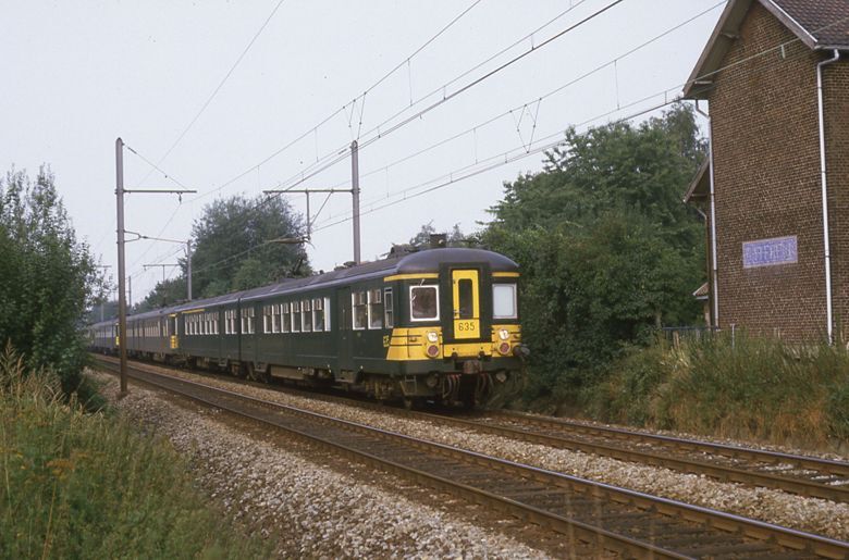 Motorstel 635 behoort tot reeks 05 schijf 1966. Van deze schijf werden 40 exemplaren gebouwd in 1967. De kast van dit exemplaar werd door La Brugeoise et Nivelles (BN) en Ateliers Belges Réunis (ABR) vervaardigd. De elektrische onderdelen werden door ACEC geleverd. Het motorstel behaalde een snelheid van 140 km/u en had 180 zitplaatsen (28 eerste en 152 tweede klas). Het bestond uit een rijtuig ABD (eerste klas, tweede klas en bagageruimte) en een rijtuig B (tweede klas). Schenking van Myriam Hendrickx.