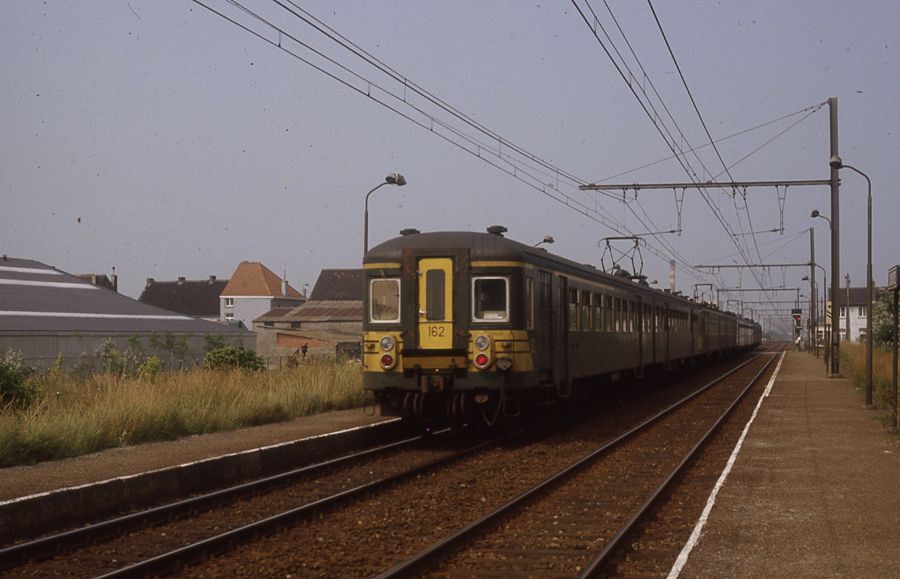 Motorstel 162 behoort tot reeks 00, schijf 1962. Van deze schijf werden 60 exemplaren gebouwd in 1962-'63. Deze motorstellen bestonden uit een motorrijtuig ABD (eerste klas, tweede klas en bagageruimte) vervaardigd door Ateliers Belges Reunis (ABR) en een rijtuig B (tweede klas), vervaardigd door La Brugeoise et Nivelles (BN). De elektrische onderdelen werden door ACEC geleverd. Het motorstel behaalde een snelheid van 130 km/u en had 180 zitplaatsen( 28 eerste en 152 tweede klas). Schenking van Myriam Hendrickx.