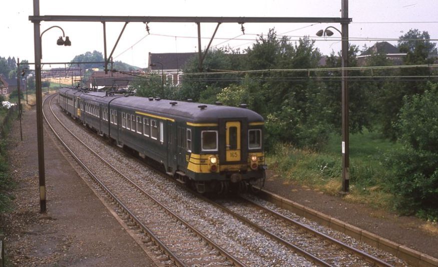 Motorstel 165 behoort tot reeks 00, schijf 1962. Van deze reeks werden 60 exemplaren gebouwd in 1962-'63. Deze motorstellen bestonden uit een motorrijtuig ABD (eerste klas, tweede klas en bagageruimte) vervaardigd door Ateliers Belges Reunis (ABR) en een rijtuig B (tweede klas), vervaardigd door La Brugeoise et Nivelles (BN). De elektrische onderdelen werden door ACEC geleverd. Het motorstel behaalde een snelheid van 130 km/u en had 180 zitplaatsen (28 eerste en 152 tweede klas). Schenking van Myriam Hendrickx.