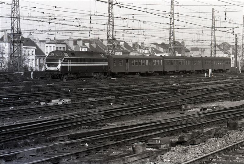 TitelDiesellocomotief 6019 met rijtuigen te Brussel-Noord