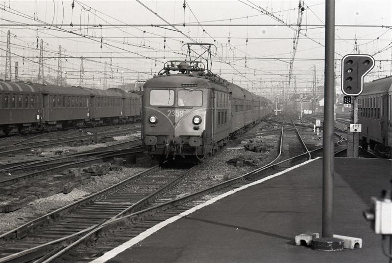 TitelElektrische locomotief 2358 met rijtuigen te Brussel-Noord