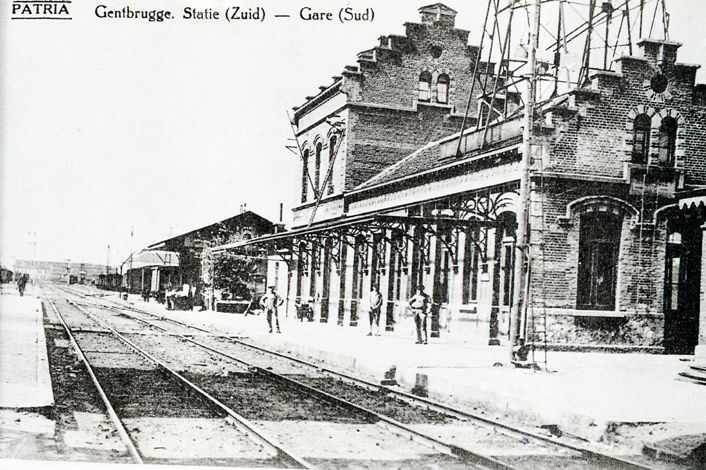 BeschrijvingReproductie van een postkaart met als opschrift 'Gentbrugge. Statie (Zuid) - Gare (Sud)'. De postkaart toont de perronzijde en de zijgevel het stationsgebouw. Op het eerste perron staat spoorwegpersoneel.