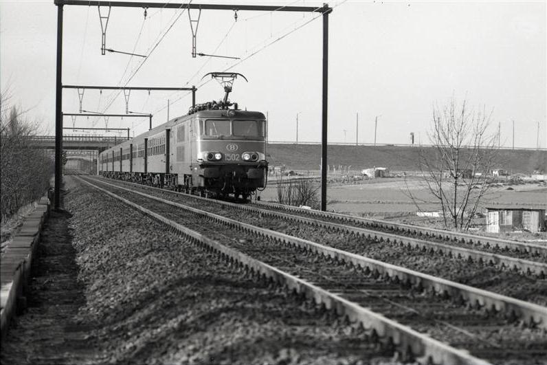 TitelElektrische locomotief 1502 met rijtuigen te Anderlecht