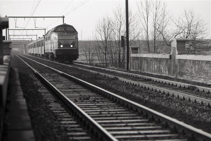 TitelDiesellocomotief 5142 met M 2-rijtuigen te Anderlecht