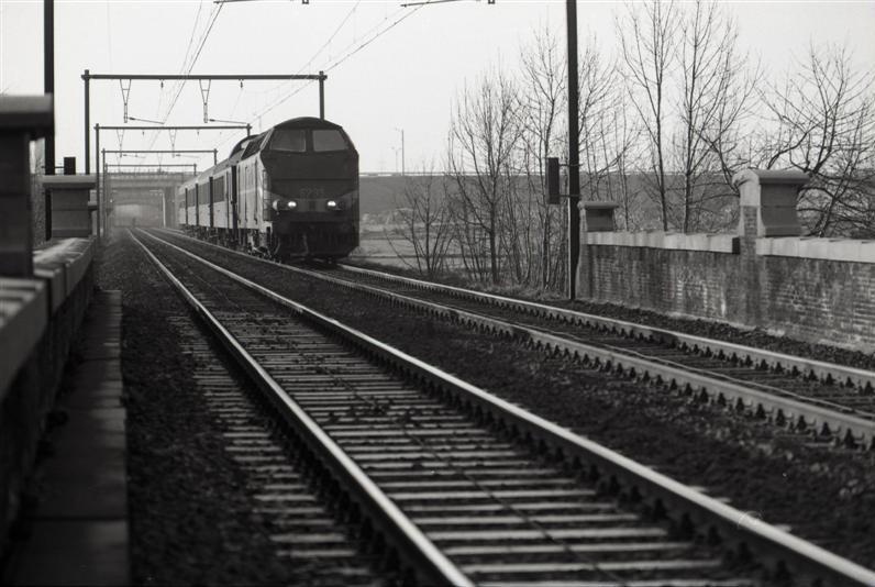 TitelDiesellocomotief 6233 met rijtuigen te Anderlecht