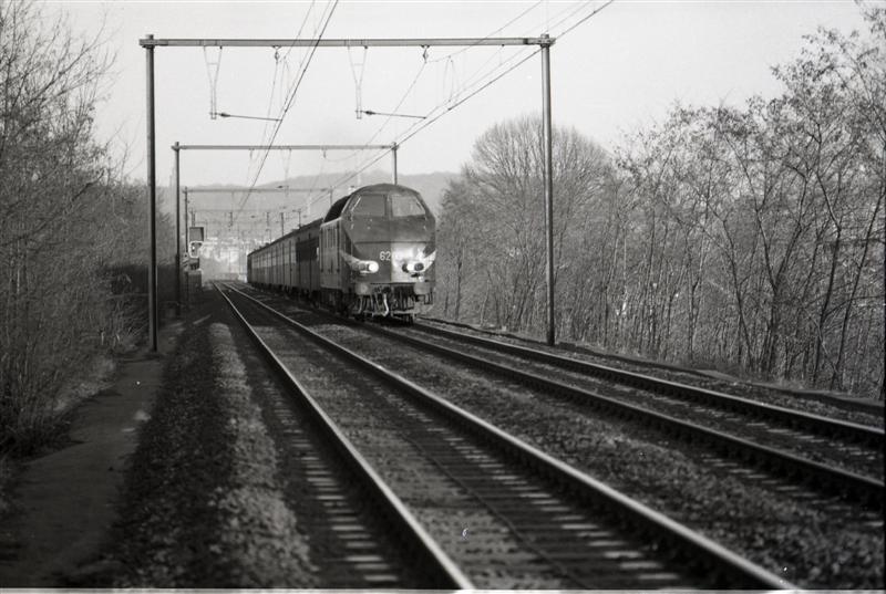 TitelDiesellocomotief 6203 met M 2-rijtuigen te Anderlecht