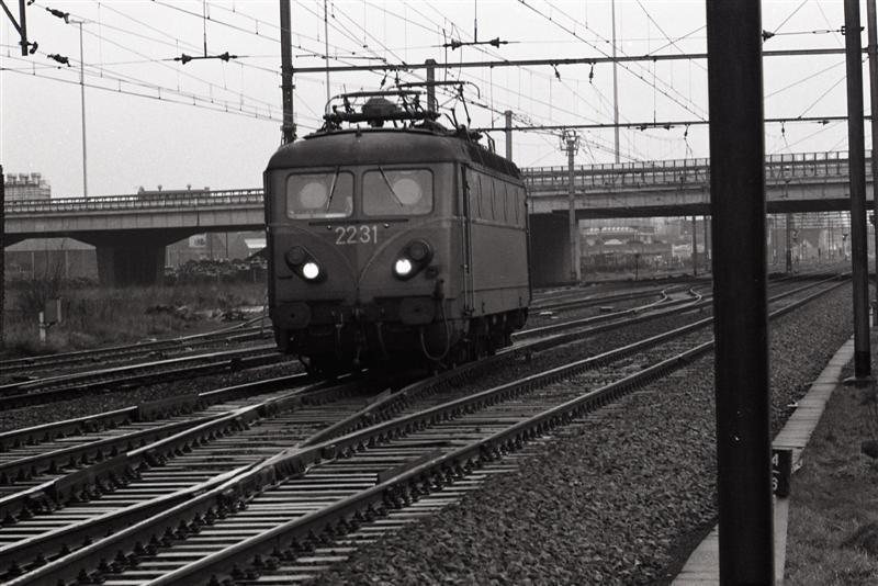 BeschrijvingDe locomotief passeert een wissel. Op de achtergrond zien we een viaduct van de Brusselse Grote Ring.