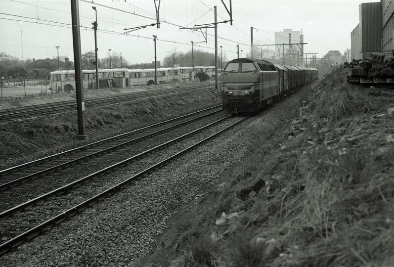 TitelDiesellocomotief 6331 met goederenwagens te Anderlecht-West