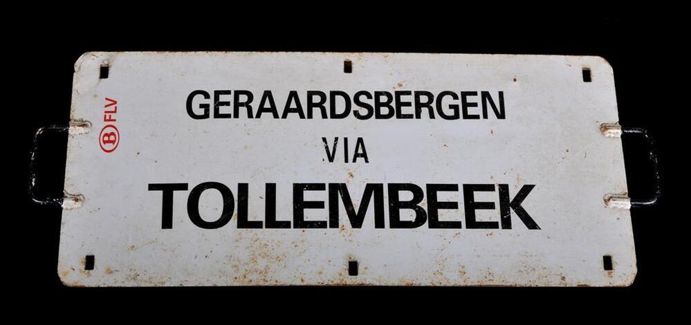 TitelRitbord voor de trein naar Geraardsbergen via Tollembeek