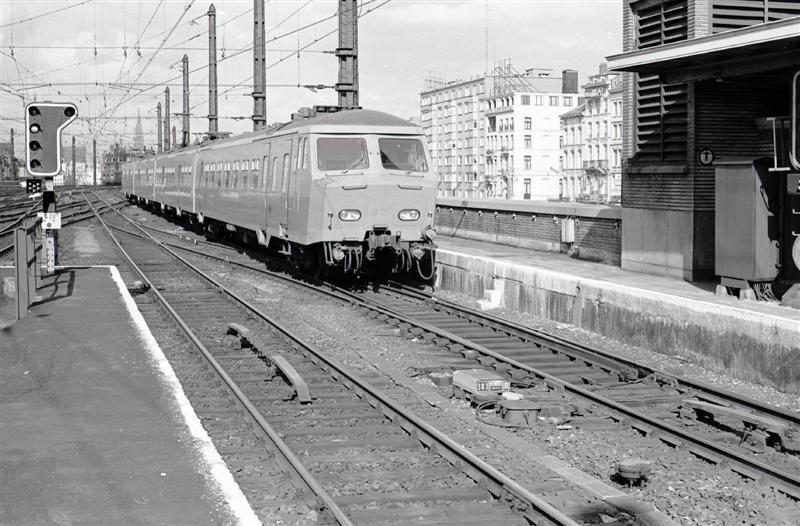 TitelVierledig motorstel 811 aan het perron van station Brussel-Zuid