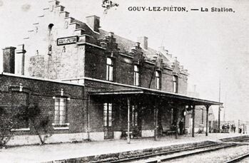 BeschrijvingReproductie van een postkaart met als opschrift 'Gouy-lez-Pieton. - La Station.' De postkaart toont de zij- en achtergevel met luifel van het station.