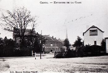 BeschrijvingReproductie van een postkaart met als opschrift 'Genck. - Environs de la Gare'. De postkaart toont een overweg bij het station. Op de kaart staat een handtekening.