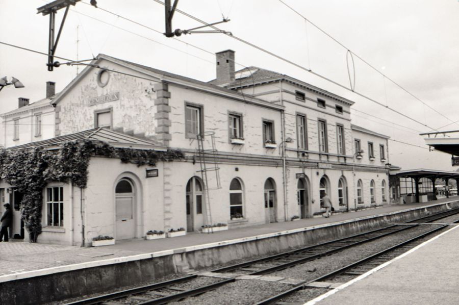 BeschrijvingReproductie van een postkaart zonder opschrift. De postkaart toont de achtergevel van het station, gefotografeerd van op het tweede perron.