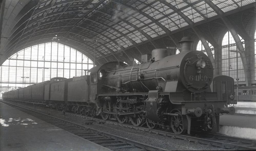 Stoomlocomotief 64.140 aan het perron van station Antwerpen-Centraal