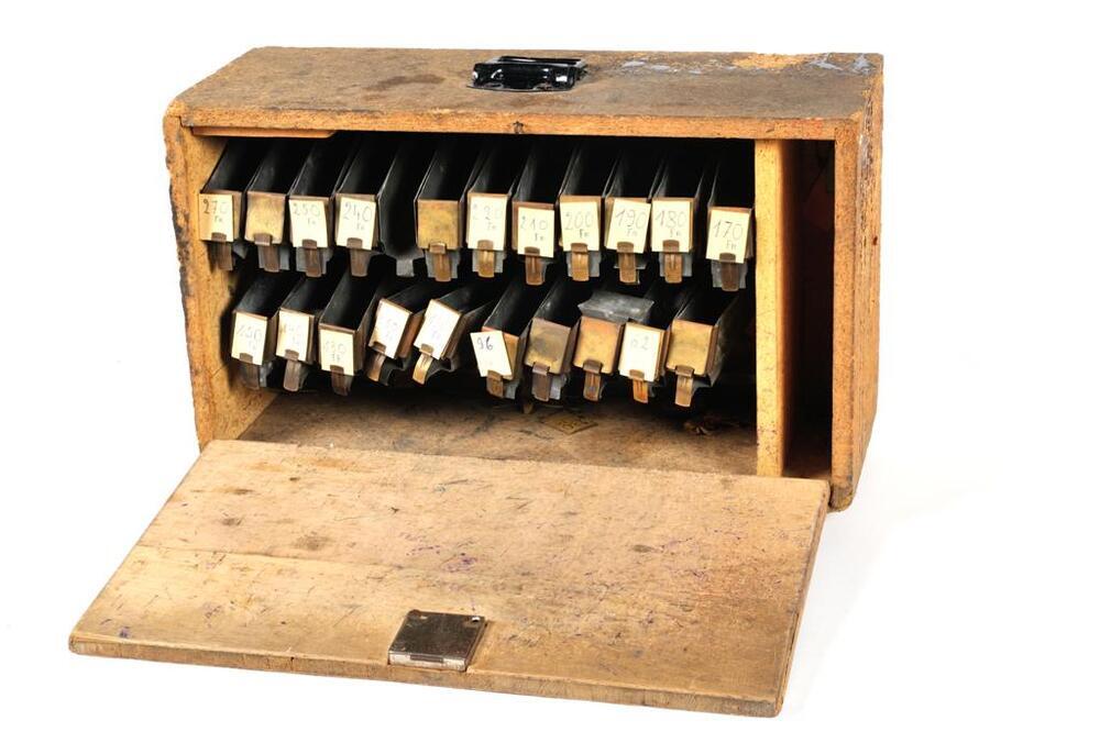 Vroeger werden vervoersbewijzen op voorhand gedrukt (Edmondsonbiljetten) en verspreid over alle stations. In dit kastje, dat ook als koffer kan gebruikt worden, zitten stangen waarop metalen bakjes vastgeklikt zitten. Per bakje zat één type voorgedrukte kartonnen treinkaartjes. Door een veermechanisme kon gemakkelijk één ticketje uit het bakje gehaald worden.