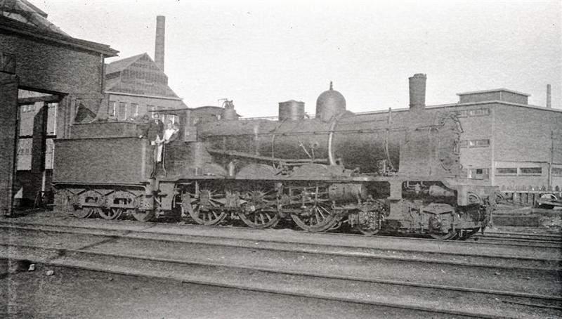 BeschrijvingDeze foto toont de rechterzijde van een stoomlocomotief type 22 (1C Ten Wheel). De locomotief bevindt zich voor de ingang van de loods.