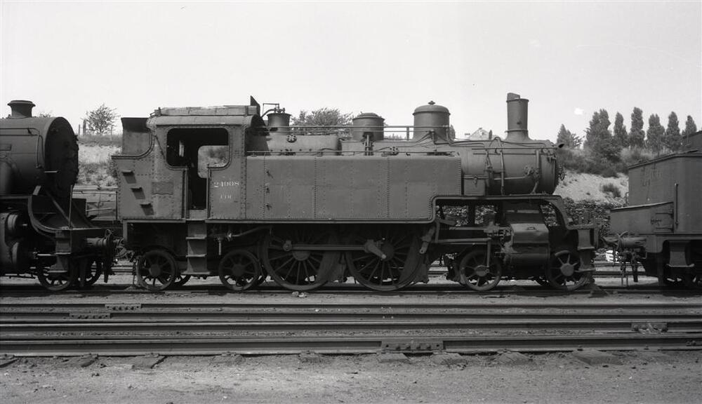 BeschrijvingDeze foto toont de rechterzijde van een tenderlocomotief type 24 (2B2t). Zij staat in een bundel, tussen twee andere stoomlocomotieven van het type 38 (1D Consolidation).