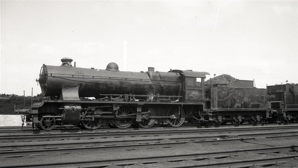 Deze foto toont de linkerzijde van een stoomlocomotief type 33 (1D Consolidation). Zij staat in de bundel van station Brussel-Zuid. Rechts zien we de achterzijde van stoomlocomotief 7.052 (type 7 – 2C Ten Wheel).
