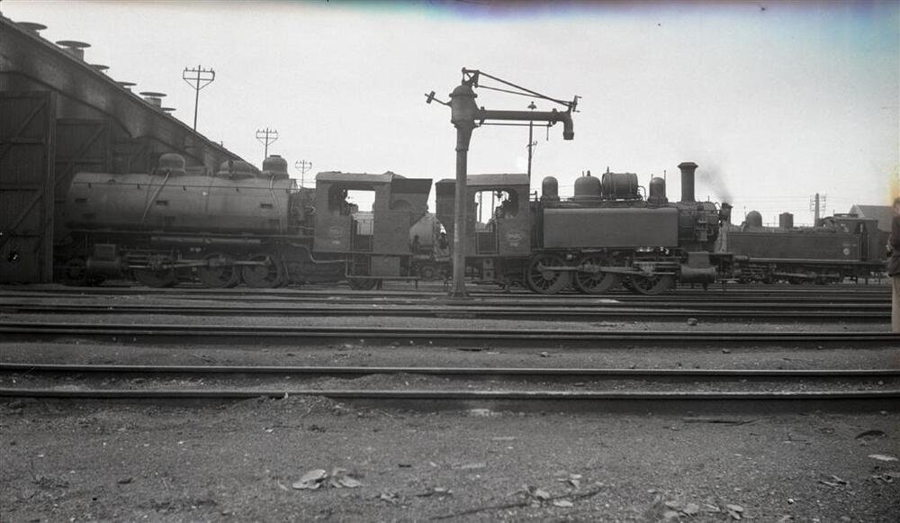 Deze foto toont de linkerzijde van een tenderlocomotief van het type 57 (1C1t), die voor de poorten van de stelplaats staat. Achter deze locomotief staat een andere tenderlocomotief van het type 58 (Ct). In de achtergrond zien we rechts een tenderlocomotief van het type 53 (Dt). Op de voorgrond staat een waterkolom.
