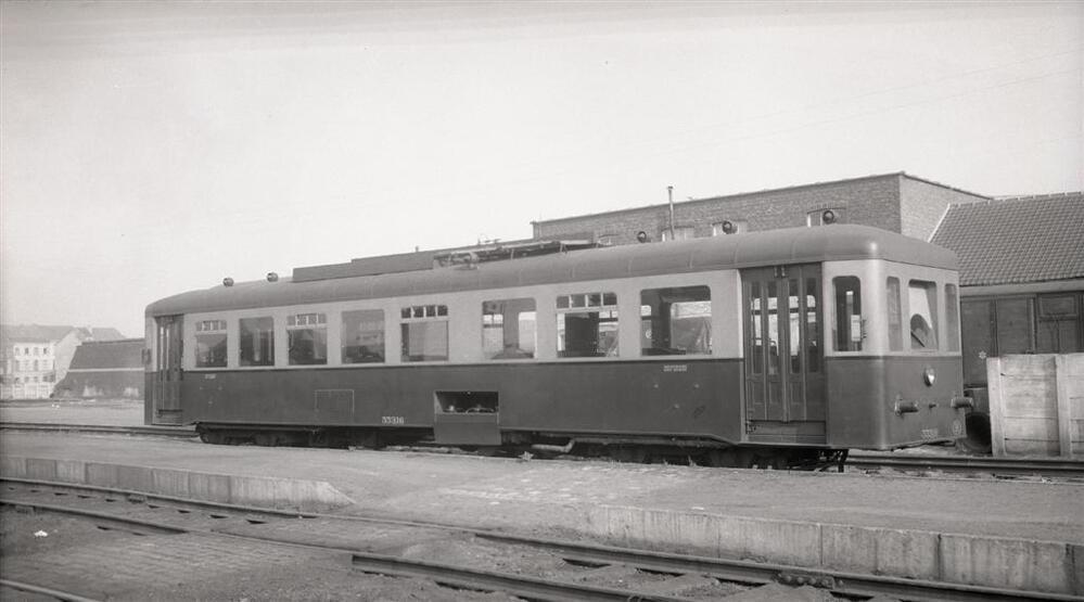 BeschrijvingWe zien een motorwagen van het type 553 aan het perron in het station Kortrijk. Achter de motorwagen is een deel van een dienstgebouw van het station te zien.