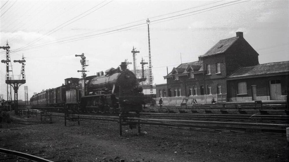 We zien een stoomlocomotief van het type 9 (2C Ten Wheel) met nummer 936. Deze sleept een trein met rijtuigen van de Nederlandse Spoorwegen (NS). De locomotief heeft reeds een voorverwarmer van het ACFI-type. In de achtergrond staan er dienstgebouwen en verschillende mechanische seinen.