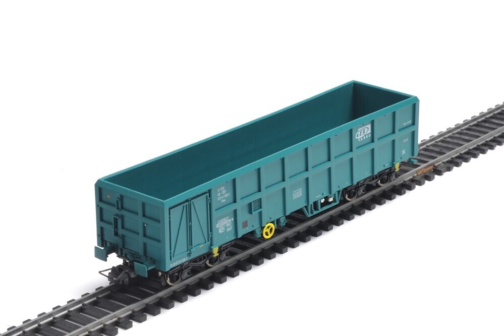 Groene open stortwagen van B-Cargo. Deze wagen op vier assen heeft aan beide zijkanten een deur om de goederen makkelijker uit te storten. Er staan verschillende opschriften op de zijkanten, zoals het identificatienummer, de lettercode Fas en het typenummer 1415G5. De maquette werd op schaal H0 1/87 vervaardigd.