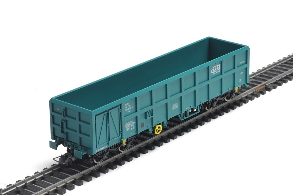 Groene open stortwagen van B-Cargo. Deze wagen op vier assen heeft aan beide zijkanten een deur om de goederen makkelijker uit te storten. Er staan verschillende opschriften op de zijkanten, zoals het identificatienummer, de lettercode Fas en het typenummer 1415G5. De maquette werd op schaal H0 1/87 vervaardigd.