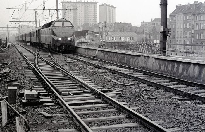 TitelDiesellocomotief 6266 met rijtuigen te Brussel-West