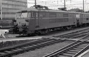 TitelElektrische locomotief 2619 aan het perron van station Brussel-Zuid