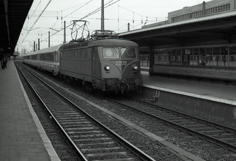 TitelElektrische locomotief 2209 aan het perron van station Brussel-Zuid