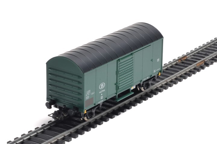 BeschrijvingGroene gesloten wagen met zwart dak. Op de zijkanten staan verschillende opschriften, zoals het identificatienummer. De maquette is op schaal H0 1/87 vervaardigd.