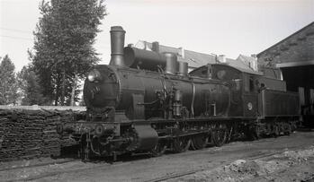 BeschrijvingWe zien stoomlocomotief nr. 39 voor de poorten van de locomotiefloods in Sint-Niklaas.