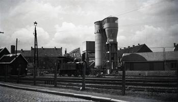 BeschrijvingWe zien tenderlocomotief 1101 van het type 11 (Ct) in het station Sint-Niklaas. Zij staat naast een waterzuiveringinstallatie (SEMIC - Brussel).