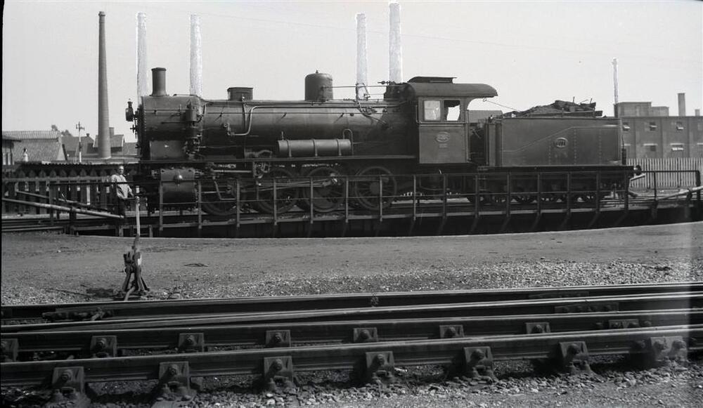We zien stoomlocomotief 8080 van het type 80 (D Eight Coupler) in de stelplaats Maastricht. Zij is gekoppeld aan de tender met nr. 6051. Beiden staan op een draaischijf. Dit is een spoorsectie die volledig draait op een spil en die werd gebruikt om locomotieven of andere voertuigen te keren.