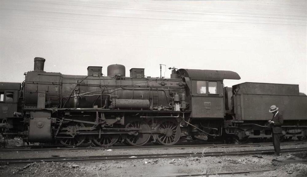 DescriptionPhoto de la locomotive à vapeur 8205 du type 81 (D Eight Coupler) au dépôt de Muizen. Une personne se trouve à l’avant plan.