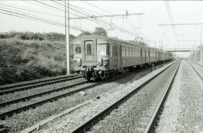 BeschrijvingMotorstel 215 is gekoppeld aan de motorstellen 642 en 151, samen vormen zij een reizigerstrein.