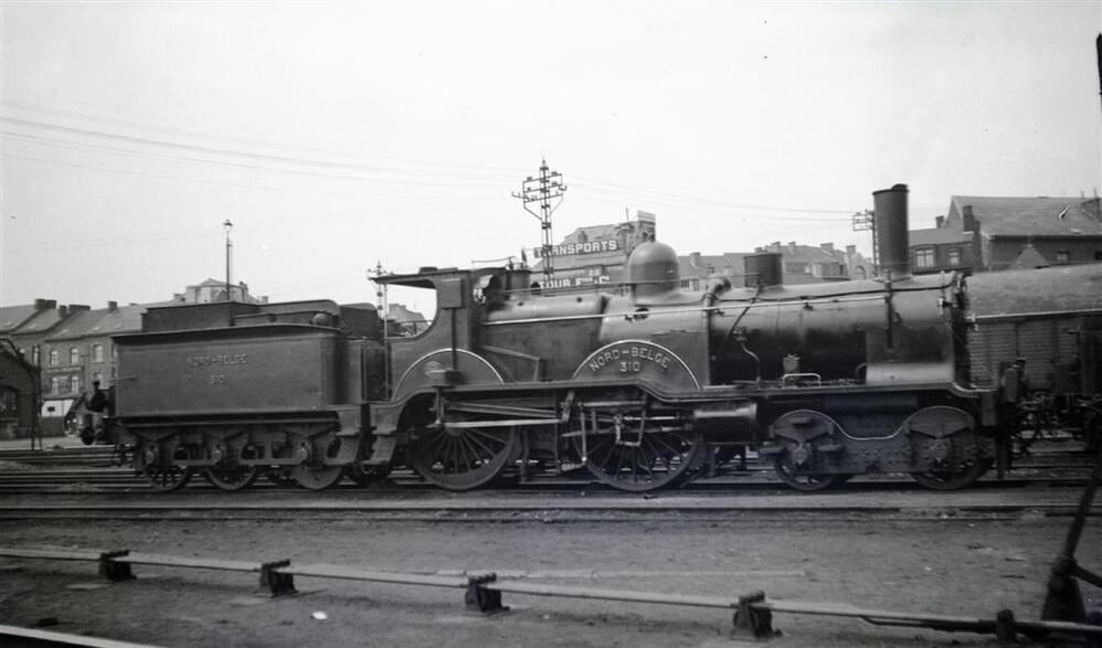 Op de foto wordt stoomlocomotief NB 310 (2B) te Namen afgebeeld. Deze locomotieven waren geinspireerd op de 'Outrance' locomotieven van de 'Société Alsacienne' in Frankrijk. Ze werden gebouwd voor de 'Compagnie du Nord' in Frankrijk, en kwamen dus ook in dienst bij de 'Compagnie du Nord-Belge' waar zij reizigerstreinen sleepten. Ze werden buiten dienst gesteld in de jaren 1934-'36. Op de voorgrond zien we een handel en stangen om de wissels te bedienen.