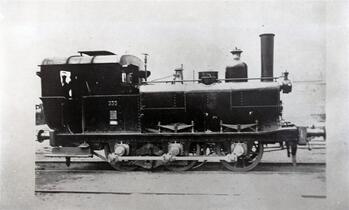 BeschrijvingReproductie van een foto van een prototype van de rangeerlocomotief type 51 (Ct). Deze werd in 1867 gebouwd door de Belgische constructeur Couillet te Charleroi.