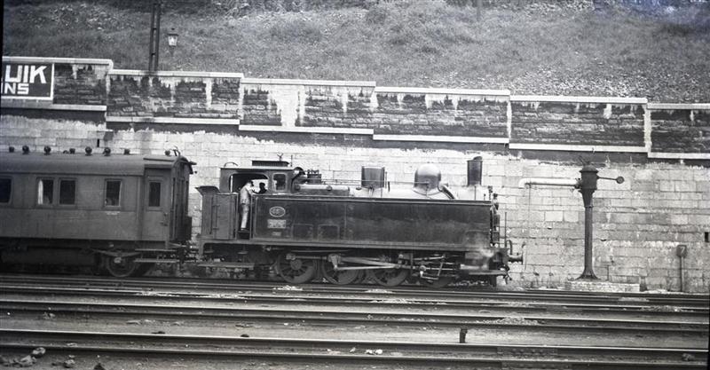 BeschrijvingRangeerlocomotief van het type 53 (Dt) met Nord-Belgerijtuig. Ook is rechts een waterkolom te zien.