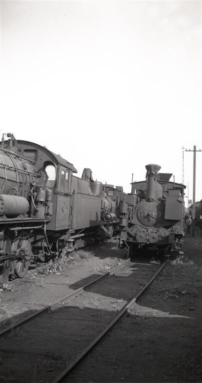 BeschrijvingOp deze foto zien we enkele terzijdegestelde stoomlocomotieven (locomotief type 81 en type 71 beiden D Eight Coupler). De schoorstenen zijn afgedekt om de locomotieven te vrijwaren van waterinsijpeling.