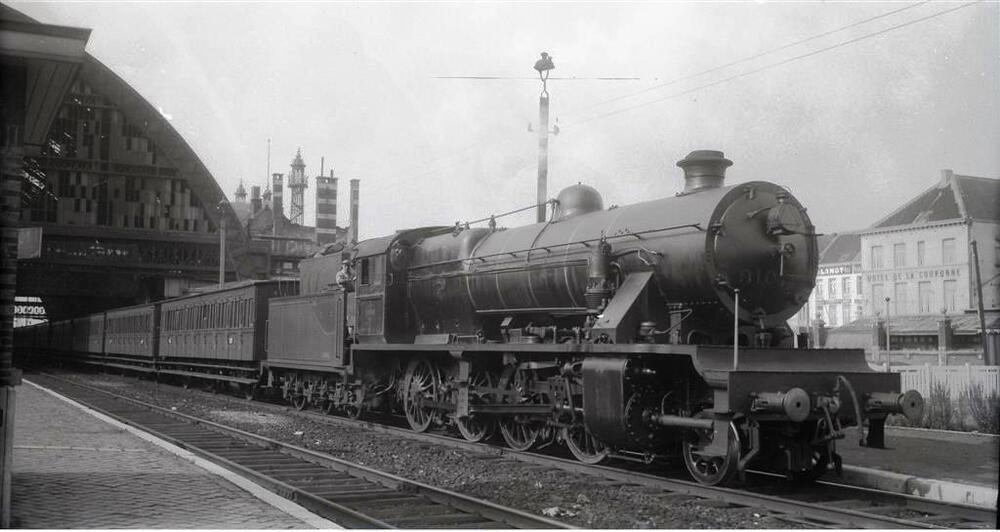 Op de foto zien we stoomlocomotief 31.049 van het type 31 (1D Consolidation) in station Mechelen. Zij is onderweg met een sleep GCI-rijtuigen van Gent naar Leuven. De reizigerstrein staat gedeeltelijk onder de overkapping, en het locomotiefpersoneel poseert voor de fotograaf. In de achtergrond zien we een gedeelte van het stationsgebouw.