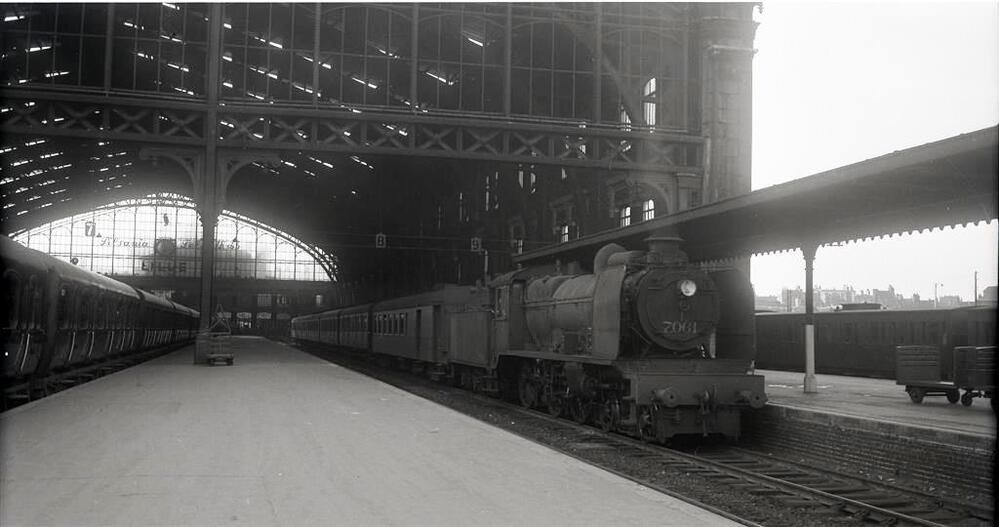 Op deze foto zien een stoomlocomotief van het type 7 (2C Ten Wheel). Deze locomotief staat klaar onder de perronoverkapping, om een trein van Rijsel naar Antwerpen-Centraal te slepen. De trein bestaat uit L-rijtuigen en een K 1-rijtuig. De reisweg van deze trein verliep via Kortrijk, Gent en Mechelen naar Antwerpen-Centraal.