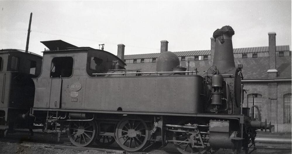 BeschrijvingWe zien een tenderlocomotief van het type 11 (Ct). De schoorsteen van deze locomotief is afgedekt omdat zij buiten dienst is gesteld. Op de achtergrond zien we enkele dienstgebouwen.