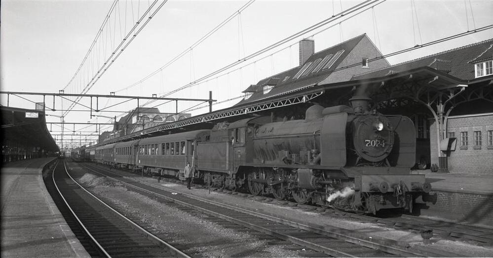 Op deze foto zien we een stoomlocomotief van het type 7 (2C Ten Wheel). De locomotief staat klaar om een internationale trein naar België te brengen. Het rijtuig achter de tender is een I 1-rijtuig derde klas.